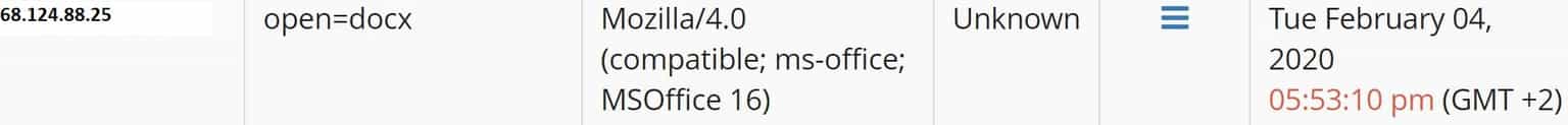 In this scenario, we counted how many victims try to open a Word document delivered to their email address. We didn’t place any macro inside the document, we only embedded a picture object that is loaded from an external URL (our HTTP handler).